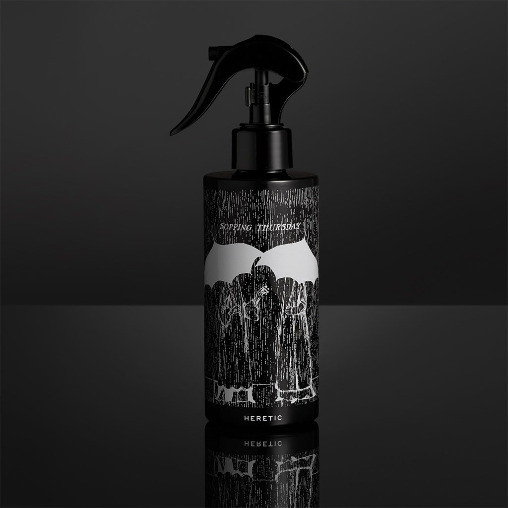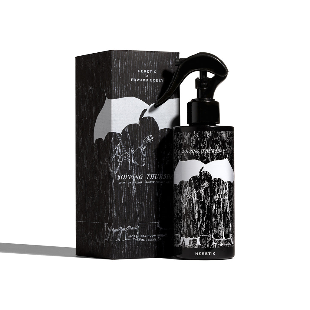 In 2025, Heretic inaugurated a new and slightly ill-advised tradition by translating the peculiar genius of Edward Gorey into scent. Gorey's world, exquisitely drawn, wryly sinister, and curiously elegant, is an enchanting realm of mischief and magic. A series of room sprays appeared quietly without fanfare, evoking abandoned corridors, ill mannered weather, questionable refreshments and social occasions best remembered imprecisely. These fragrances were not designed to brighten a room. They were meant to occupy it. To linger. To suggest that something had occurred though no one seemed inclined to discuss it.